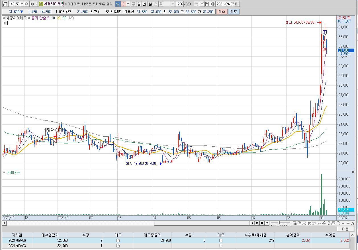 3일 종가매수 6일 2차 매수후 상승 2.6% 익절 마감.