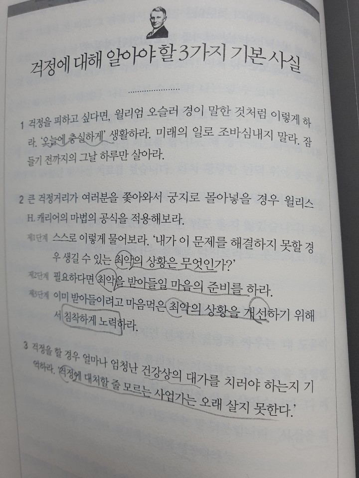 -걱정이 있다면 일단 최악 의상 황을 생각하라. 최악의 상황을 받이들 인후 최악의 상황을 개선하기 위해 노력하라.